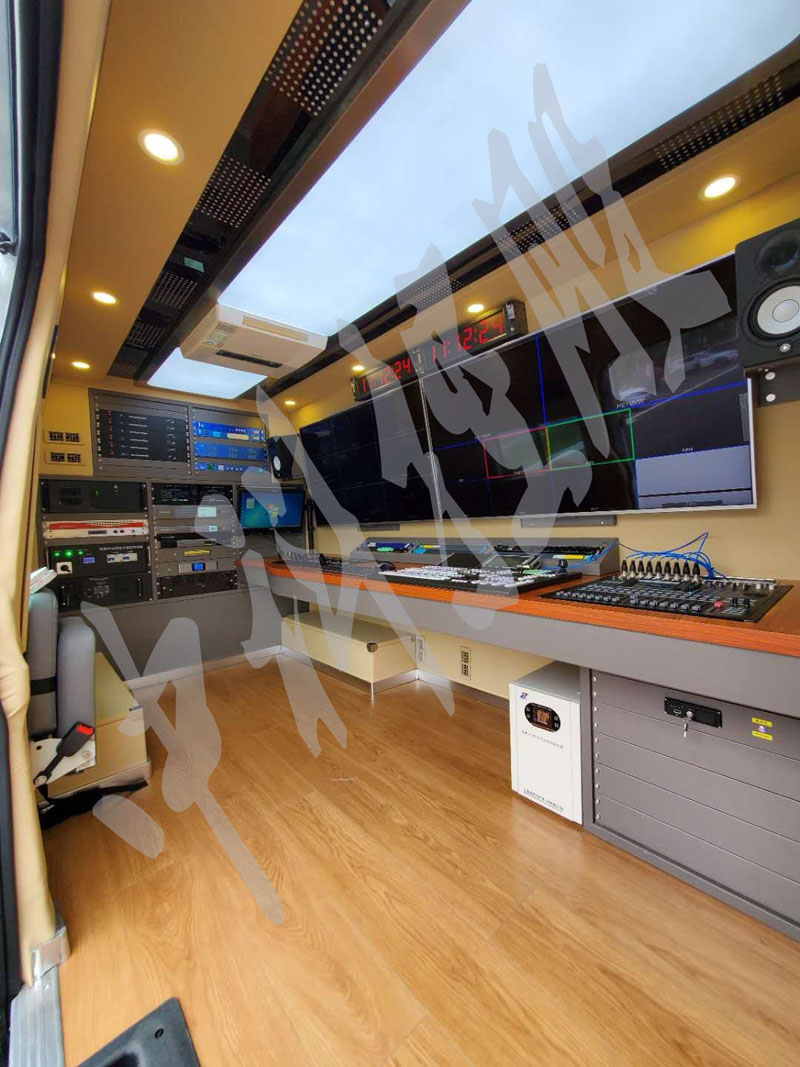 融媒体直播车是一个流动播出载体,具有室内直播间的所有功能。它以4G传输和无线调频发射传输相结合作为传输方式,能独立完成视音频节目的录播、直播和传输,行进车队的移动直播和传输,以及室内外场地的现场扩声。是一个集多功能于一身的系统总成。