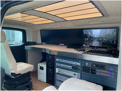 项城市广播直播车是采用奔驰底盘来进行改装,车内装饰设计简洁明亮大方。设备采用主备发射机来进行发射,保障活动的顺利进行。同时还配备360°环视摄像头,播音员在车内可直视车队行驶的位置状况。受到了客户的一致好评。